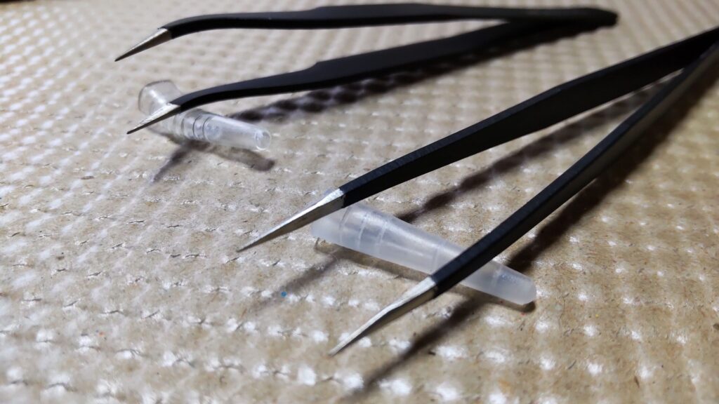丸ヤットコは、先端に向かってだんだんと細くなっているので、挟む位置で大きさを変えられます
