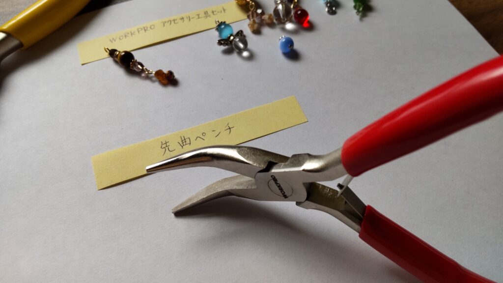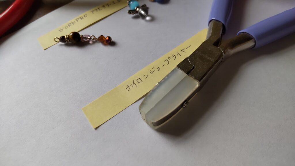 丸カンを閉じる時に役立っています。違うペンチと同時に使う時にも便利な工具です。